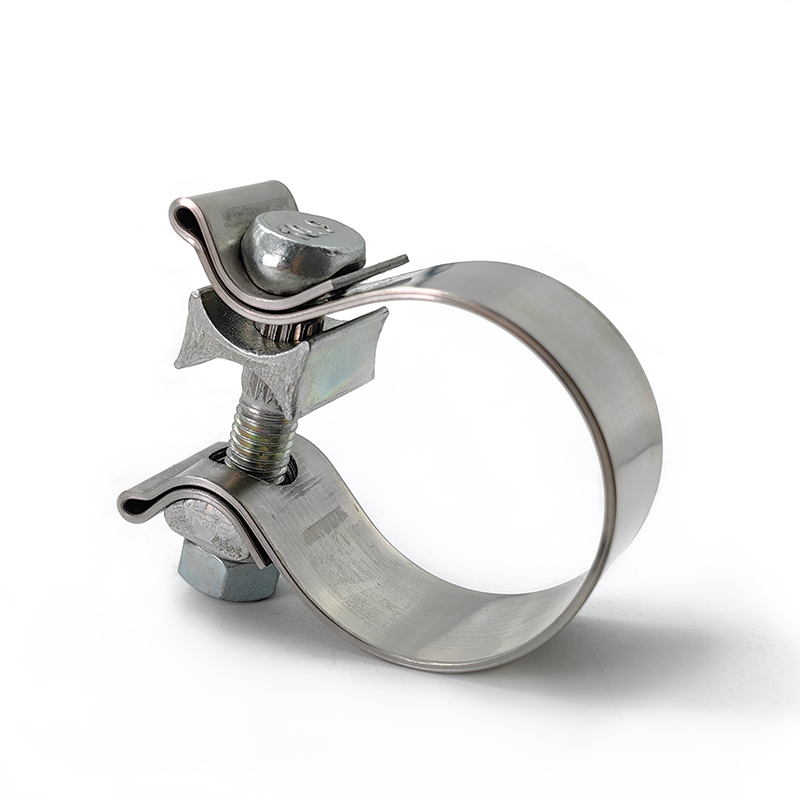 | Stainless steel band clamps are mainly used for connecting and sealing between exhaust pipes, flex pipes, mufflers and catalytic sections. The function is to let two pipes hold together firmly without welding and without pressing the pipe out of shape, which makes it suitable for jobs that need repeated removal or easy service. Passenger cars, pickup trucks, commercial vehicles and some equipment use this type widely, and repair shops and exhaust fabrication also use it often, especially when the space is tight or welding is not preferred. | |||||||||